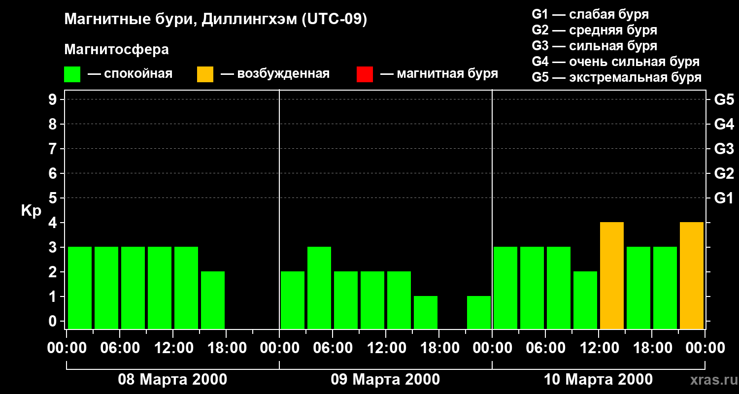 Магнитные бури в Диллингхэме — 10 марта 2000 года