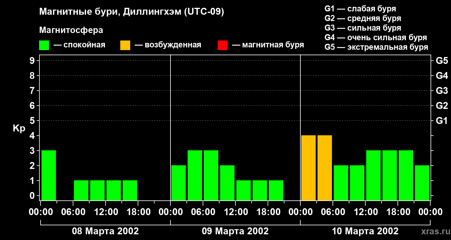 Магнитные бури в Диллингхэме 10 марта 2002 года