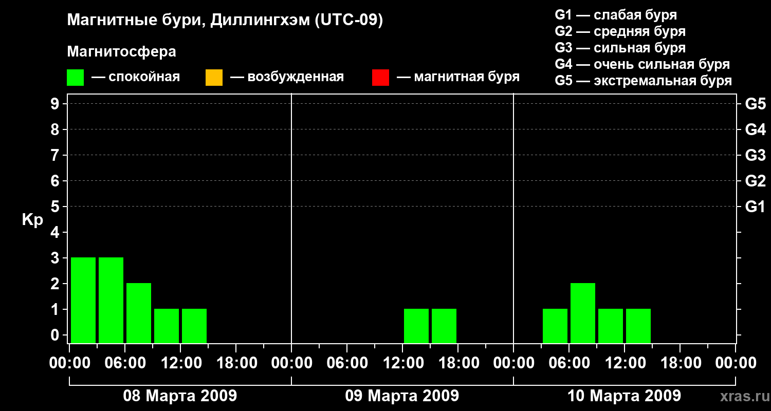 Магнитные бури в Диллингхэме — 10 марта 2009 года