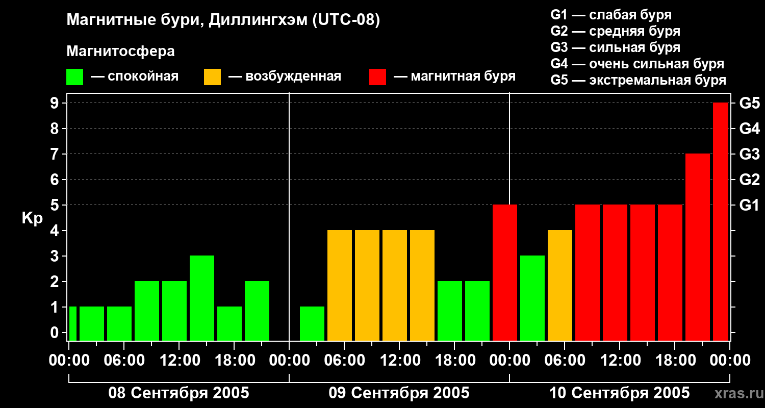 Магнитные бури в Диллингхэме 10 сентября 2005 года
