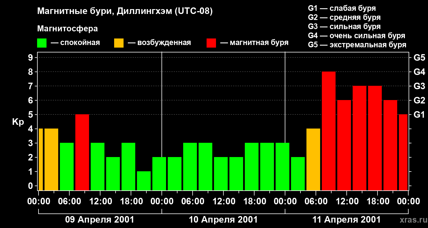 Магнитные бури в Диллингхэме 11 апреля 2001 года