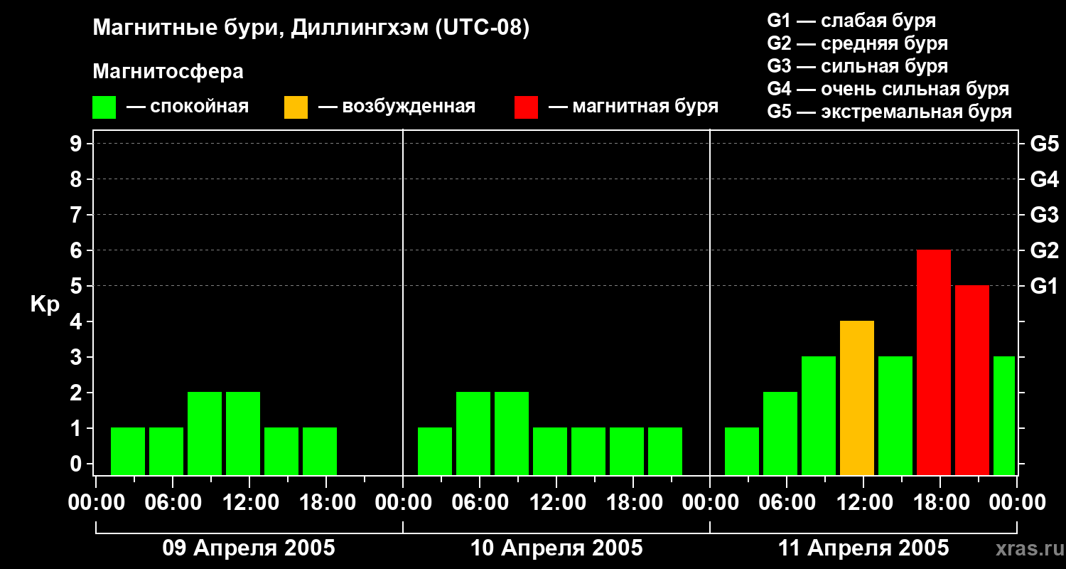 Магнитные бури в Диллингхэме — 11 апреля 2005 года