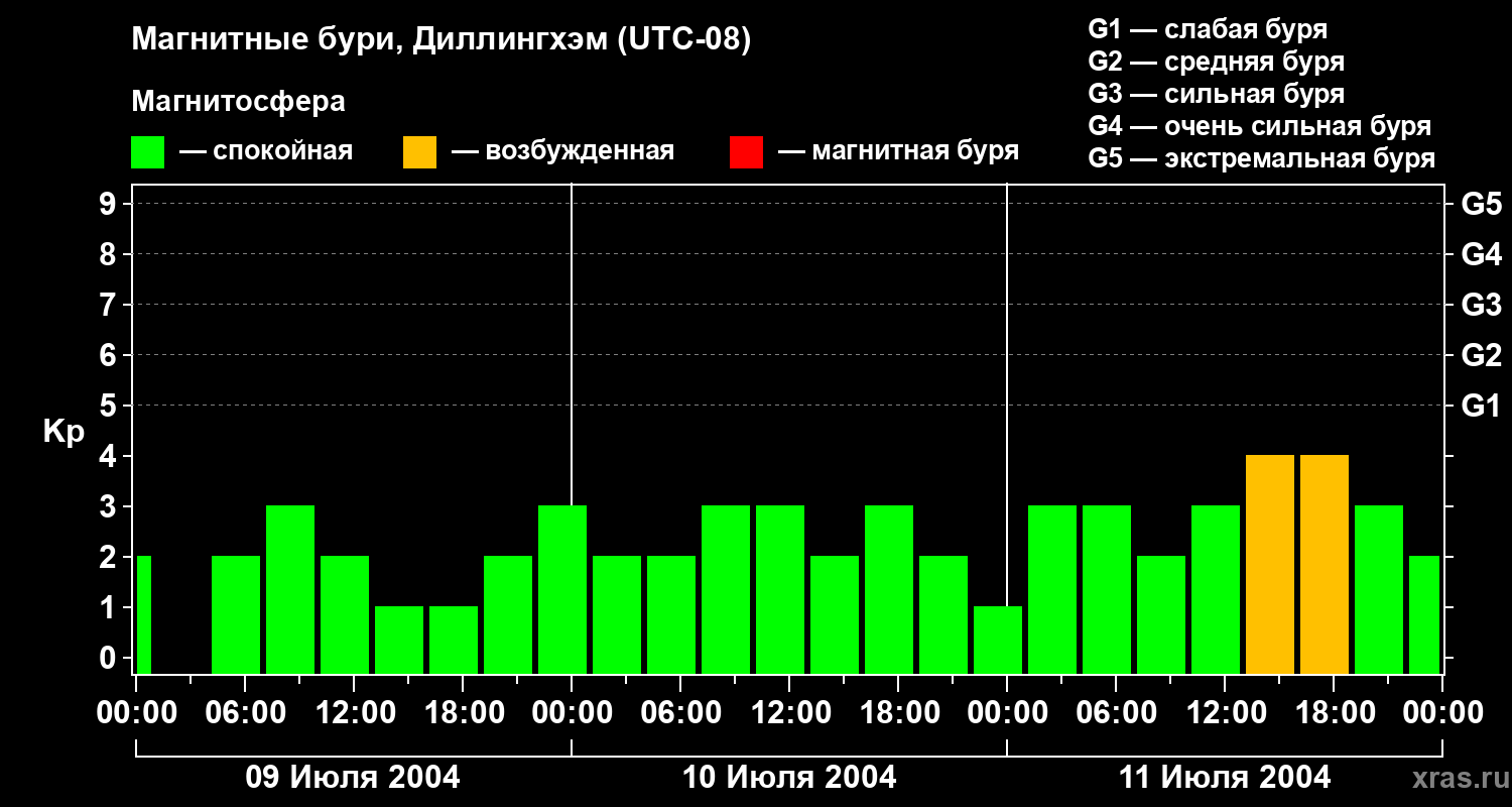 Магнитные бури в Диллингхэме 11 июля 2004 года
