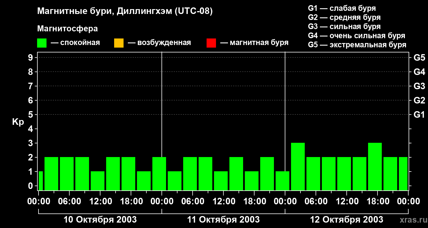 Магнитные бури в Диллингхэме 12 октября 2003 года