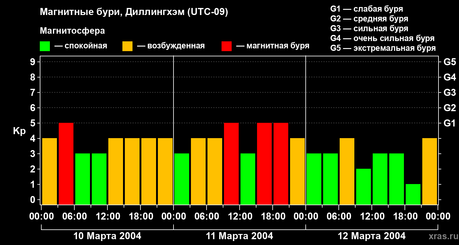 Магнитные бури в Диллингхэме 12 марта 2004 года