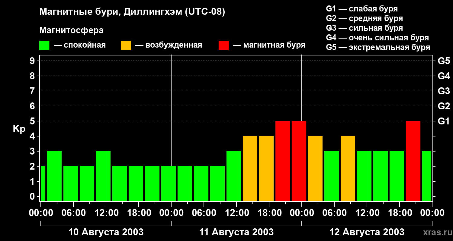 Магнитные бури в Диллингхэме 12 августа 2003 года