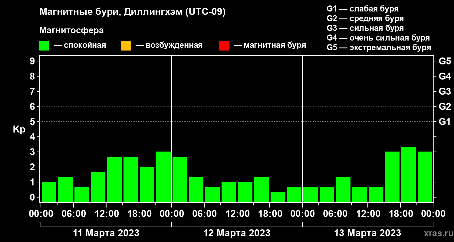 Магнитные бури в Диллингхэме 13 марта 2023 года