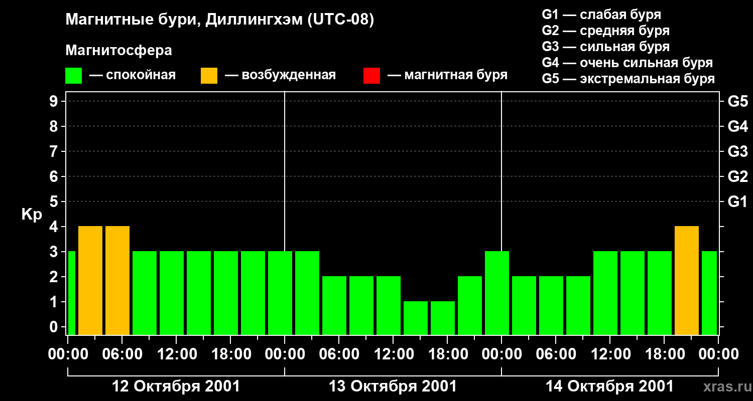 Магнитные бури в Диллингхэме 14 октября 2001 года