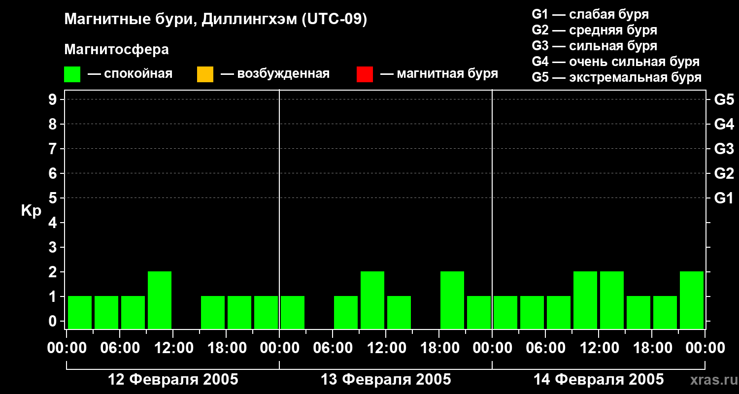 Магнитные бури в Диллингхэме — 14 февраля 2005 года