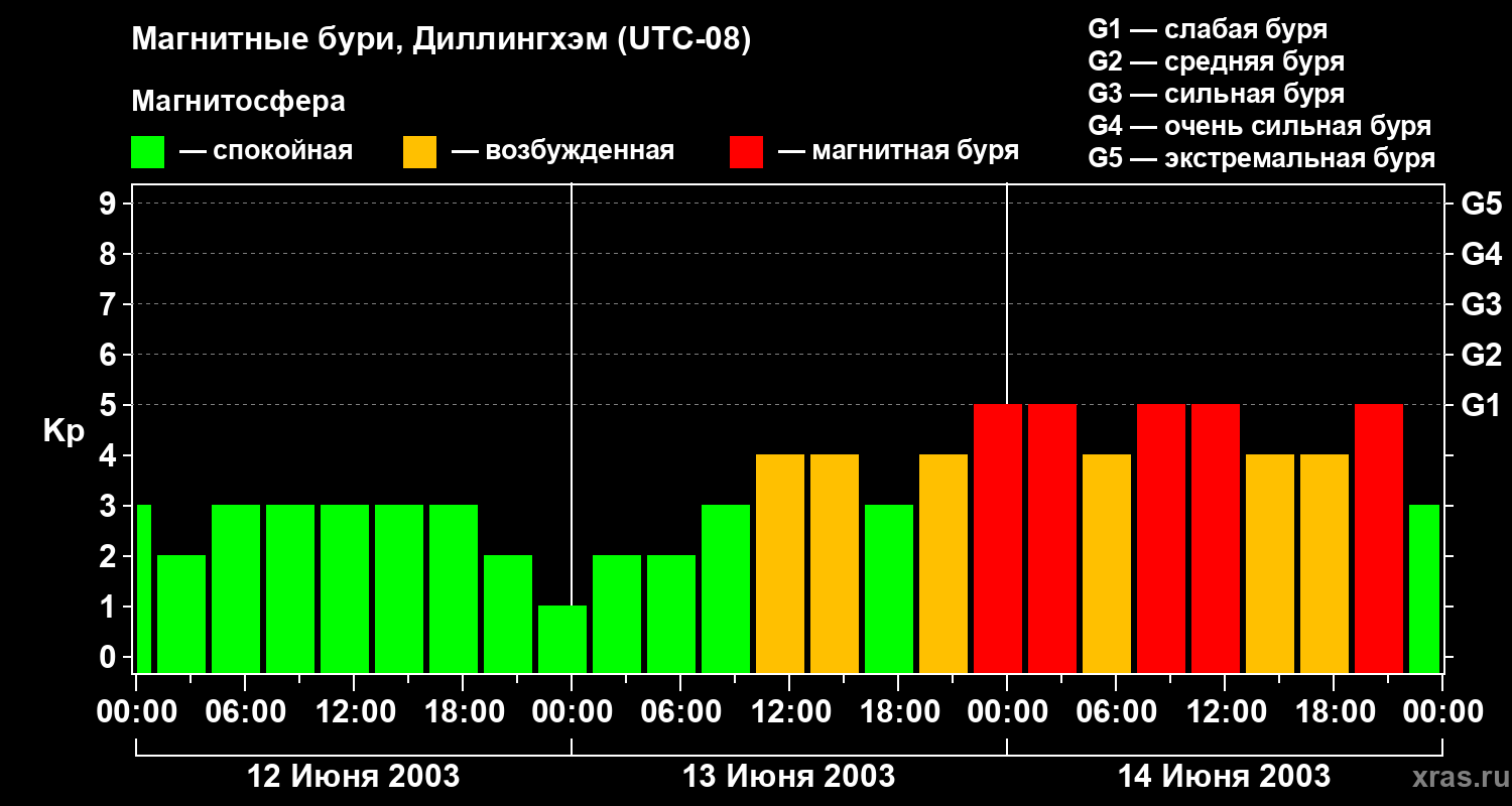Магнитные бури в Диллингхэме — 14 июня 2003 года