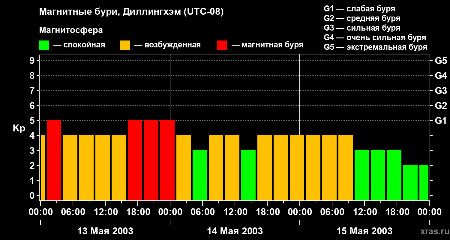 Магнитные бури в Диллингхэме — 15 мая 2003 года