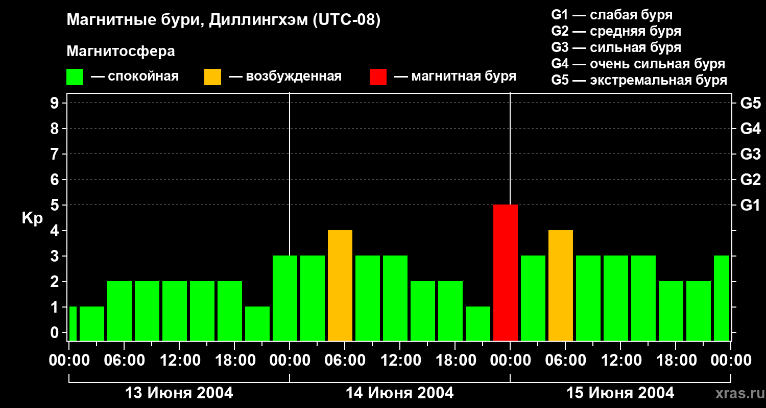 Магнитные бури в Диллингхэме — 15 июня 2004 года