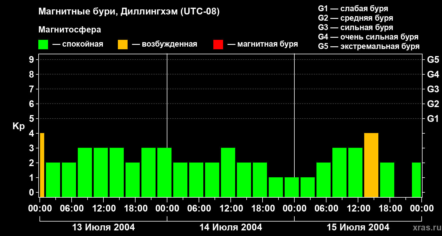 Магнитные бури в Диллингхэме — 15 июля 2004 года