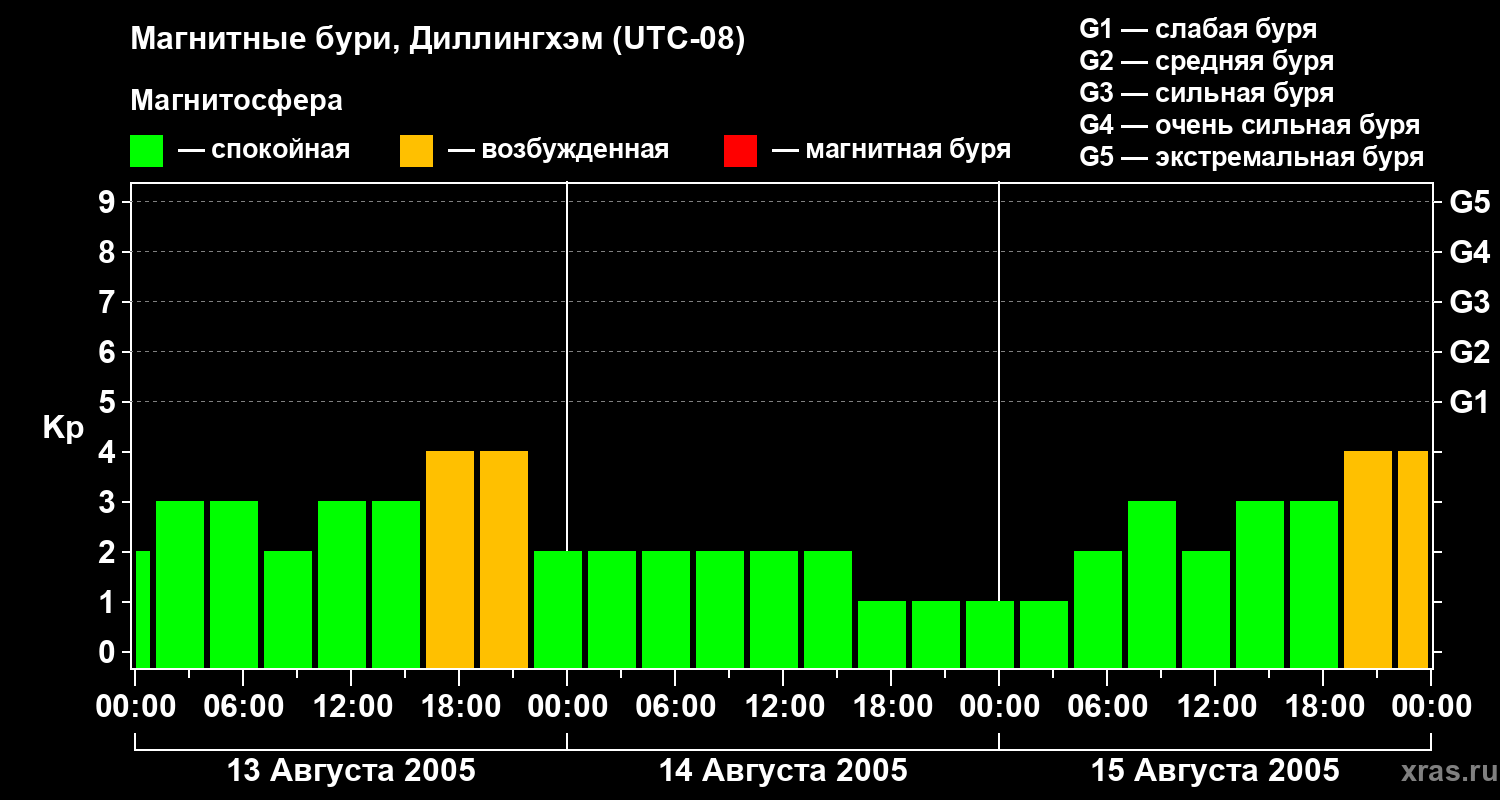 Магнитные бури в Диллингхэме — 15 августа 2005 года