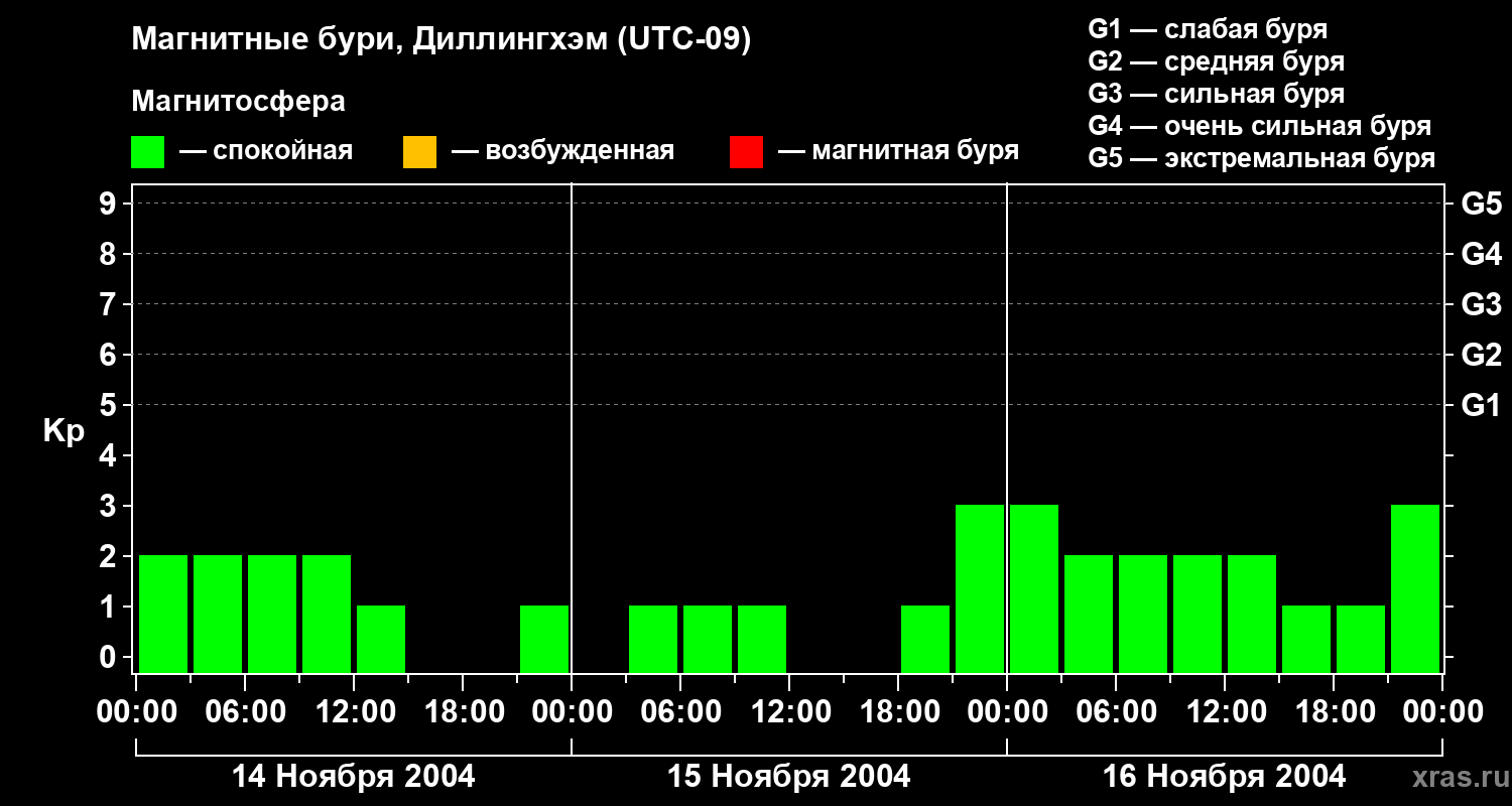 Магнитные бури в Диллингхэме 16 ноября 2004 года