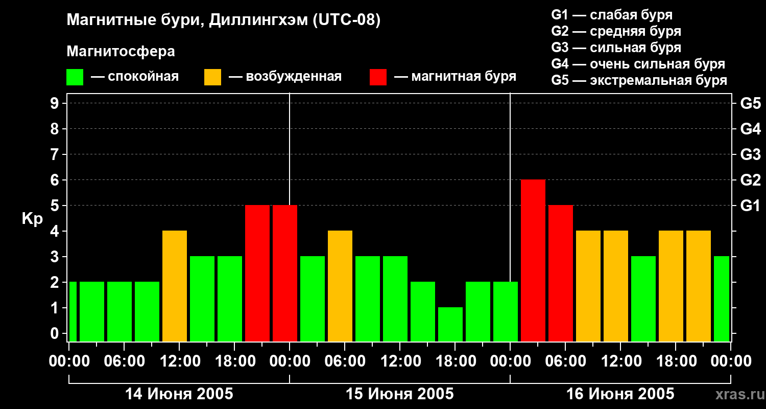 Магнитные бури в Диллингхэме — 16 июня 2005 года