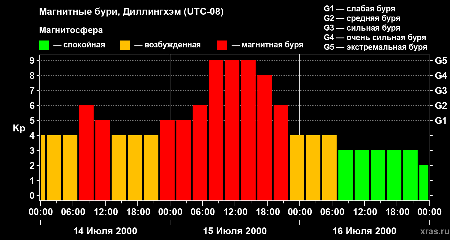 Магнитные бури в Диллингхэме 16 июля 2000 года