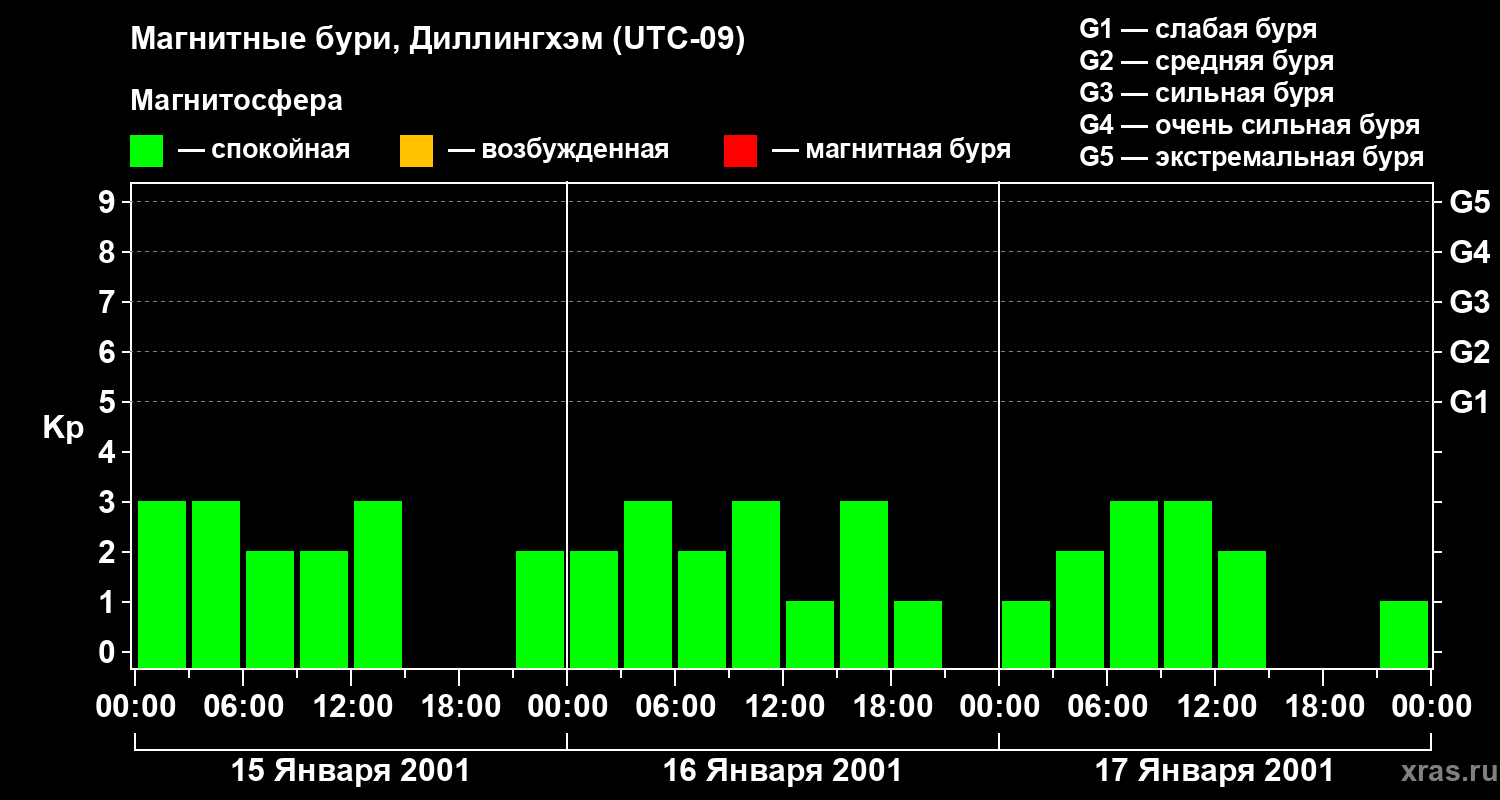 Магнитные бури в Диллингхэме 17 января 2001 года