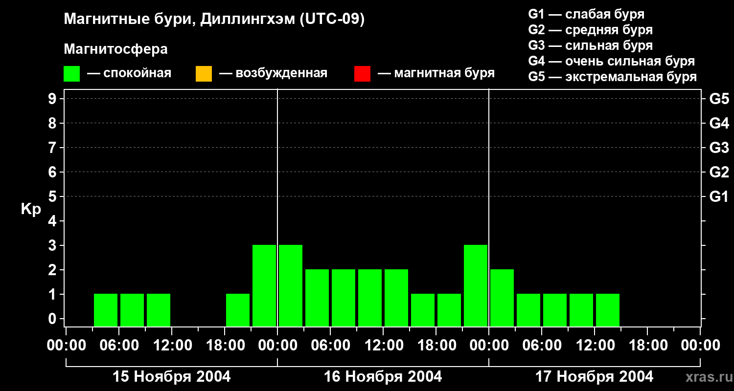 Магнитные бури в Диллингхэме 17 ноября 2004 года