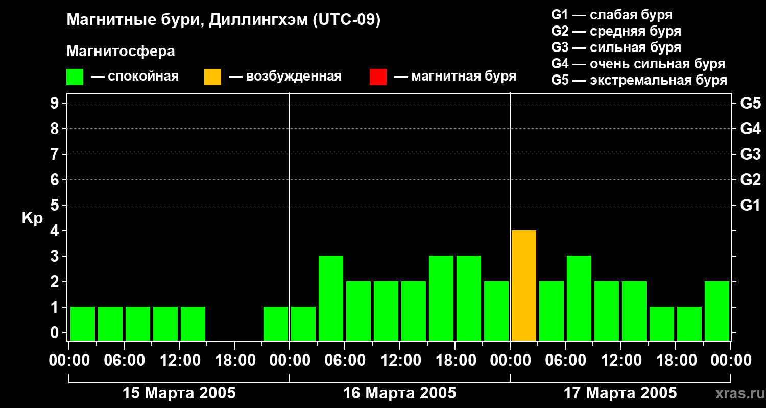 Магнитные бури в Диллингхэме — 17 марта 2005 года