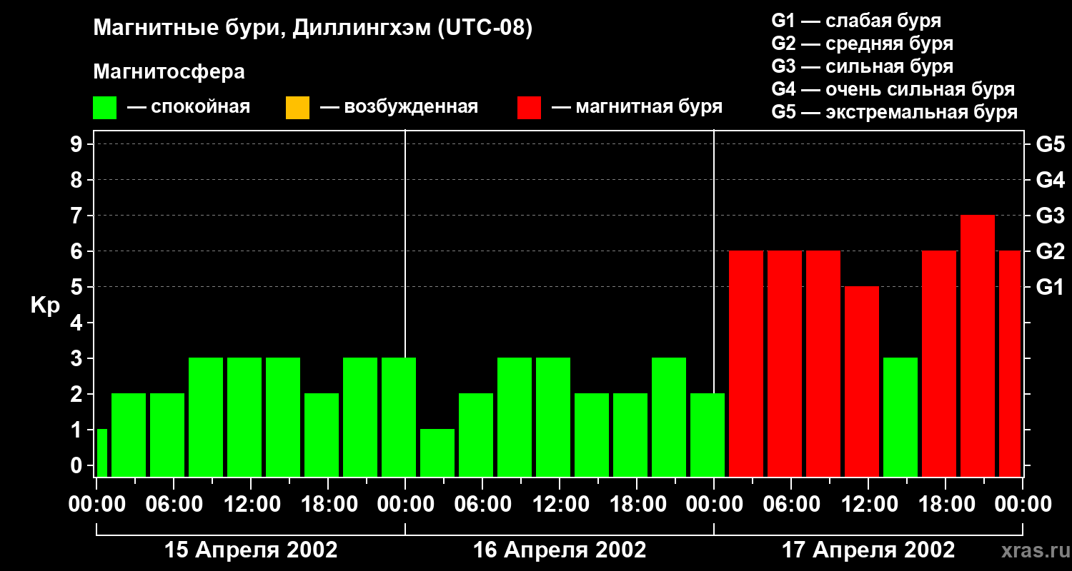 Магнитные бури в Диллингхэме — 17 апреля 2002 года