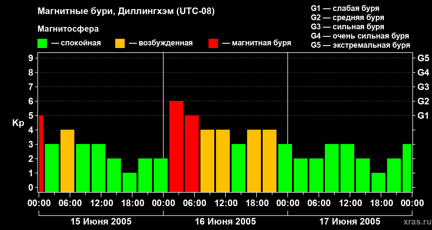 Магнитные бури в Диллингхэме — 17 июня 2005 года