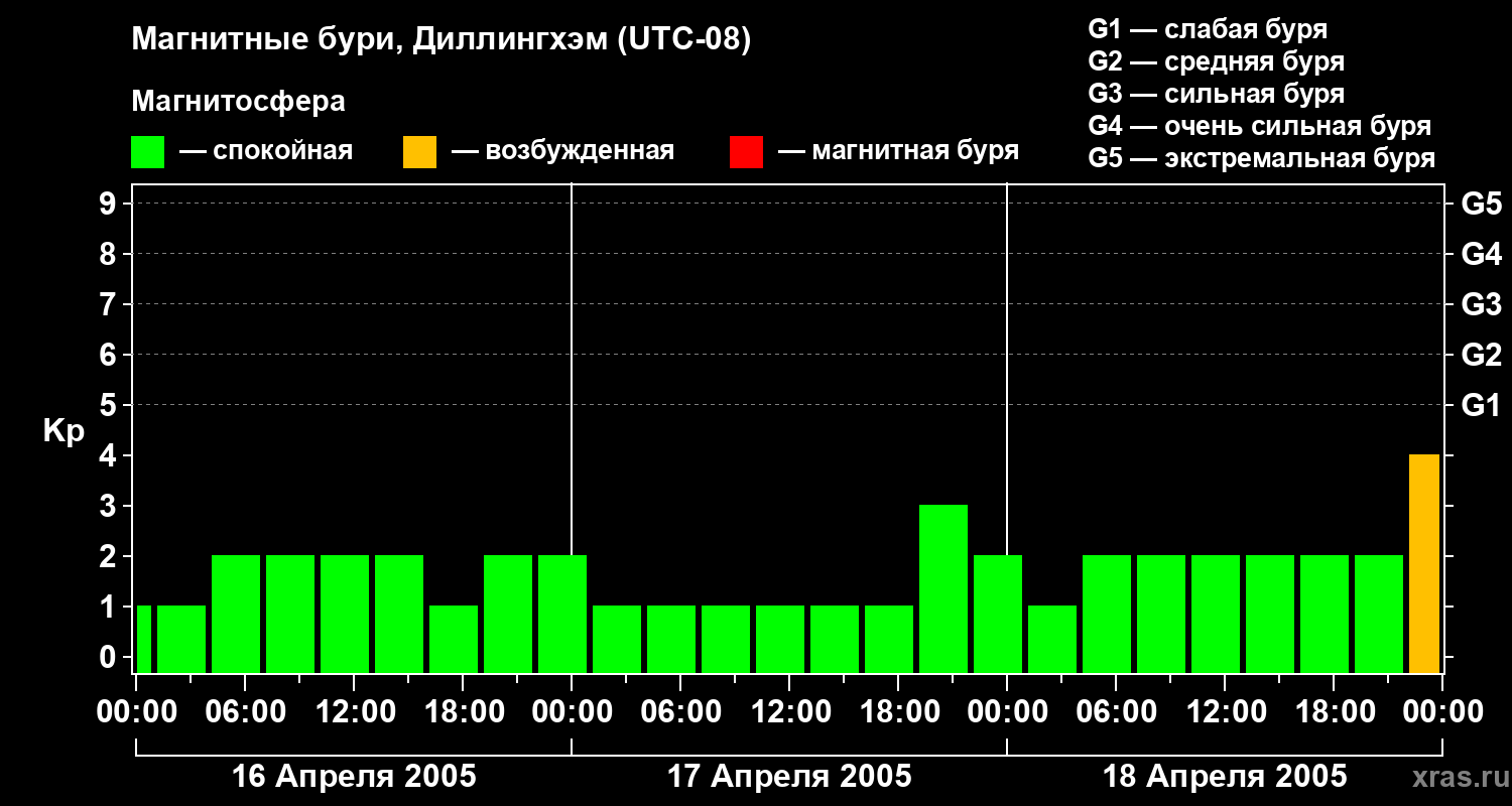 Магнитные бури в Диллингхэме в апреле 2005 года