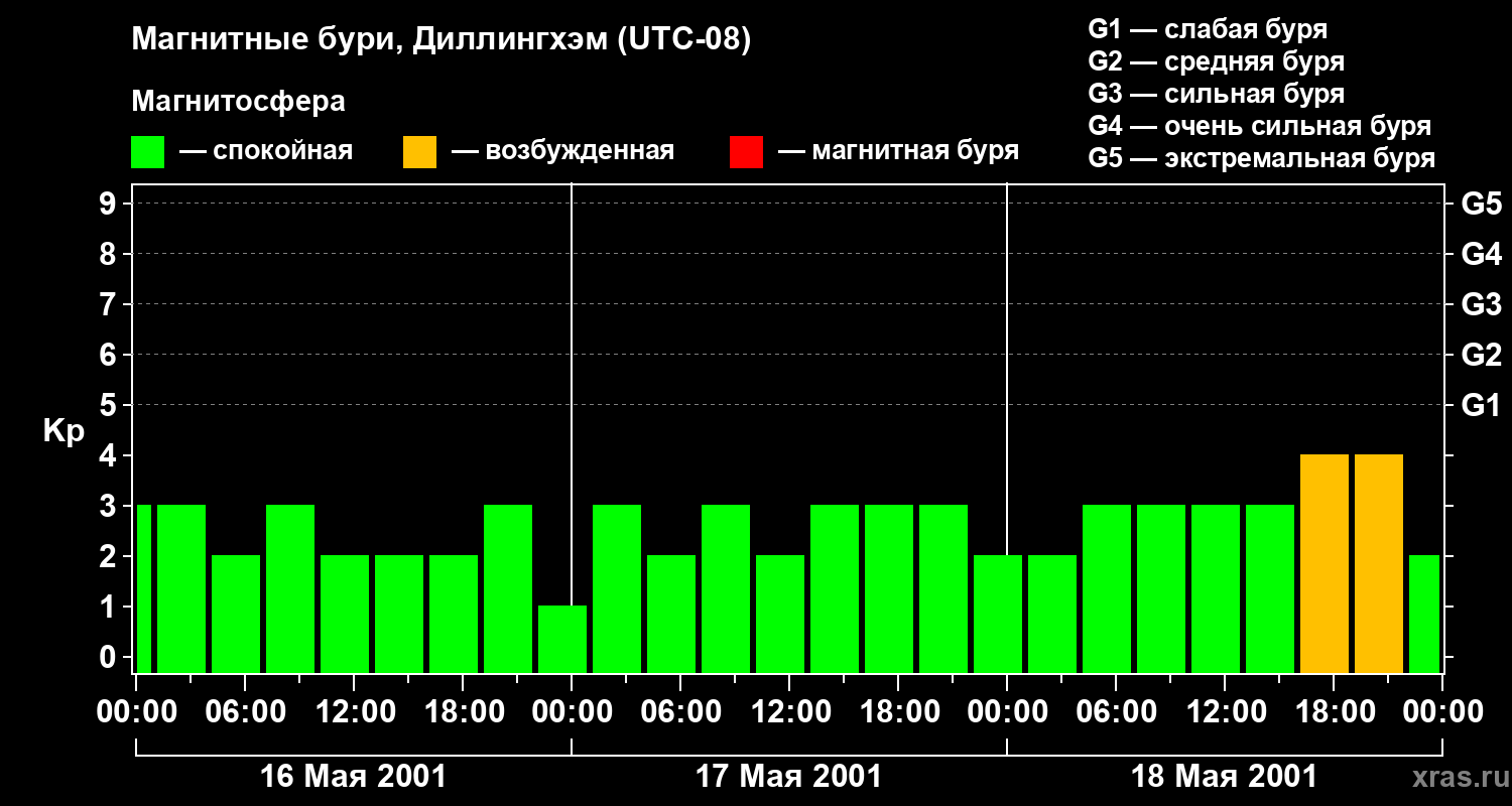 Магнитные бури в Диллингхэме — 18 мая 2001 года