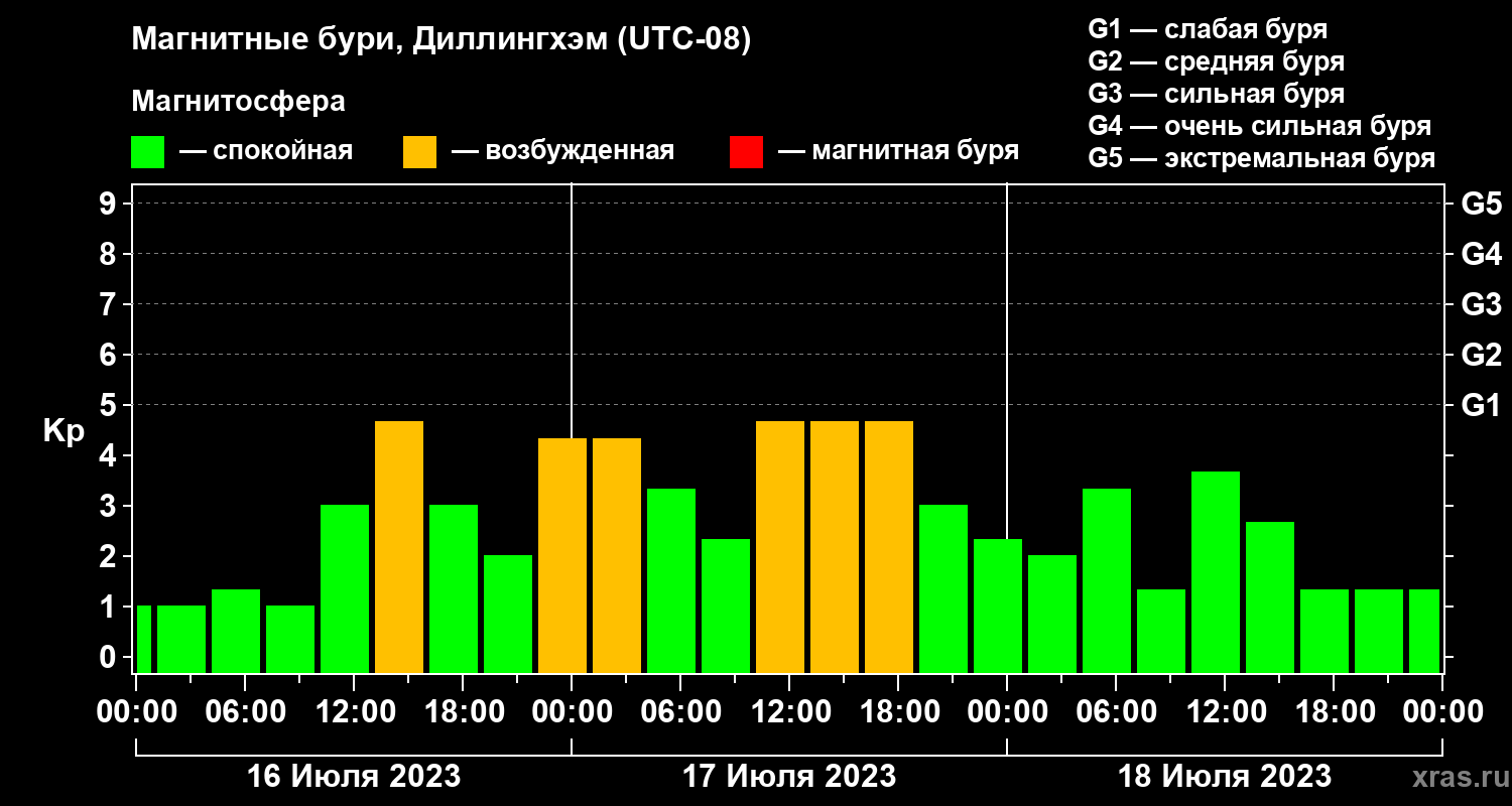 Магнитные бури в Диллингхэме в июле 2023 года