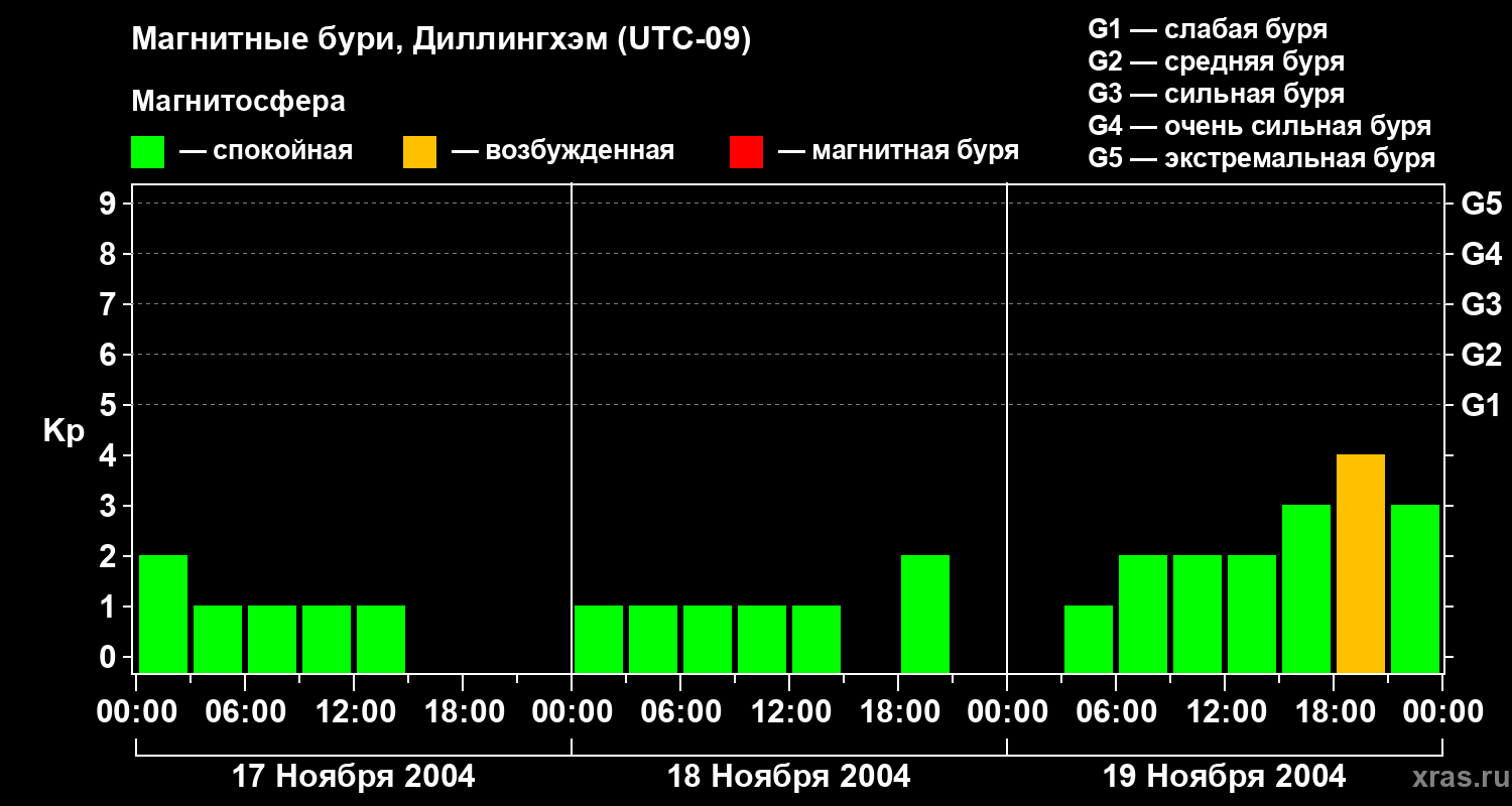 Магнитные бури в Диллингхэме 19 ноября 2004 года