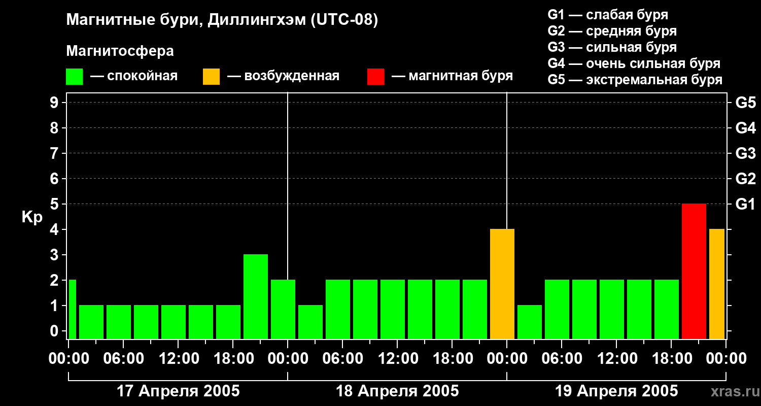 Магнитные бури в Диллингхэме — 19 апреля 2005 года