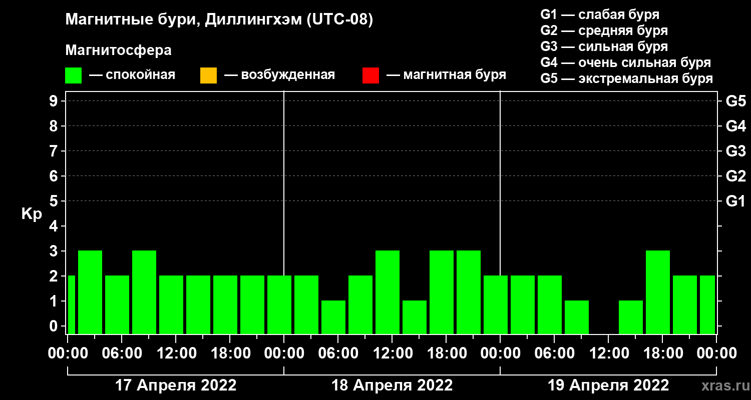 Магнитные бури в Диллингхэме в апреле 2022 года