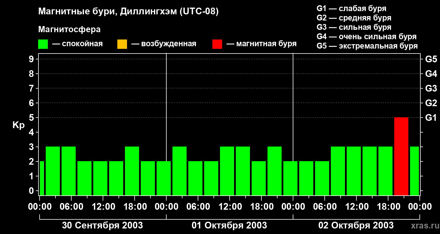 Магнитные бури в Диллингхэме — 2 октября 2003 года
