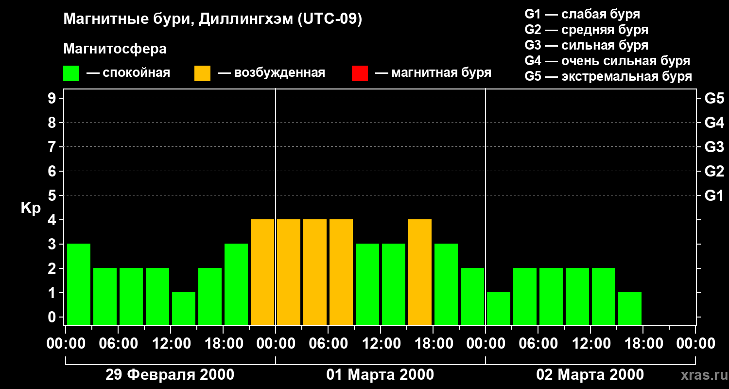 Магнитные бури в Диллингхэме — 2 марта 2000 года
