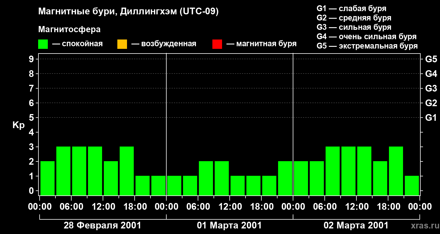 Магнитные бури в Диллингхэме — 2 марта 2001 года
