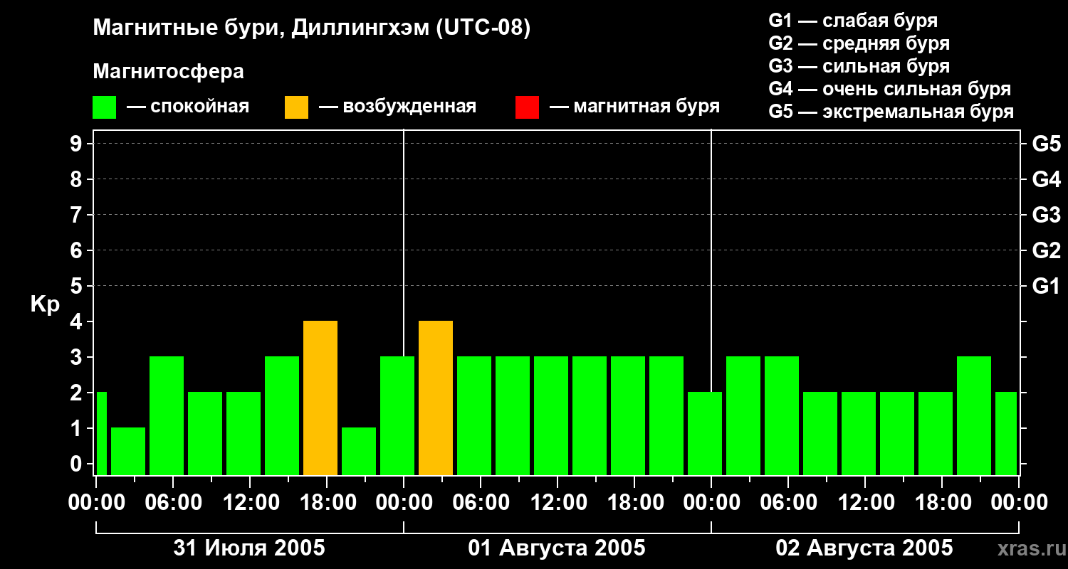 Магнитные бури в Диллингхэме 2 августа 2005 года