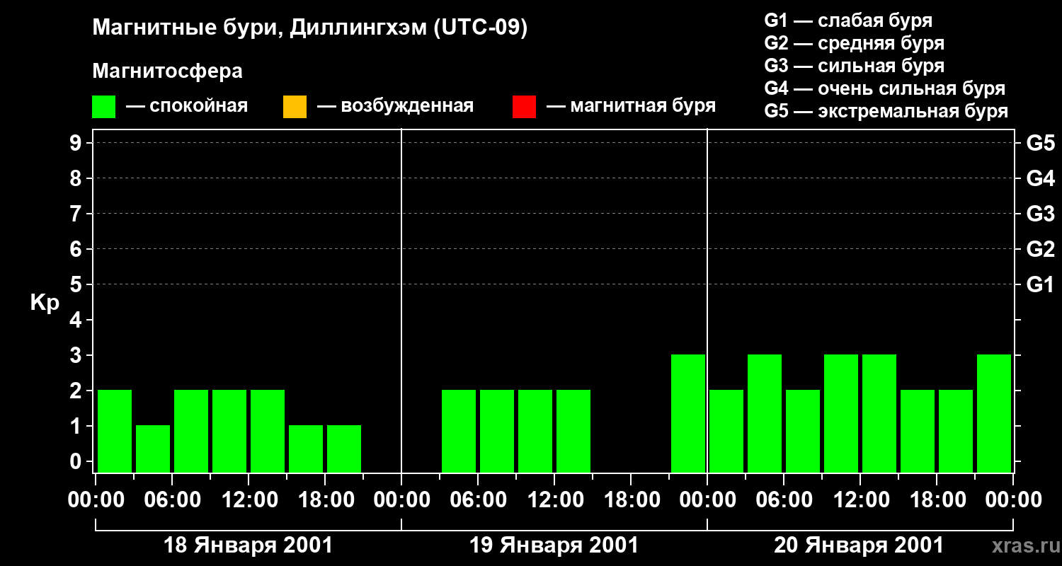 Магнитные бури в Диллингхэме 20 января 2001 года