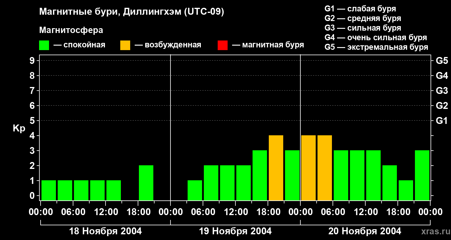 Магнитные бури в Диллингхэме 20 ноября 2004 года