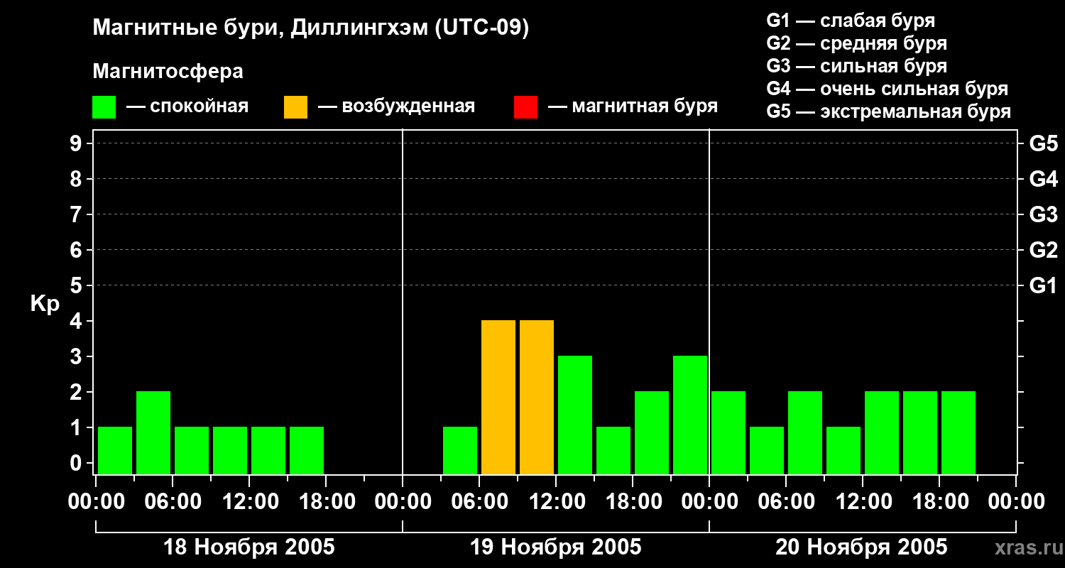 Магнитные бури в Диллингхэме 20 ноября 2005 года
