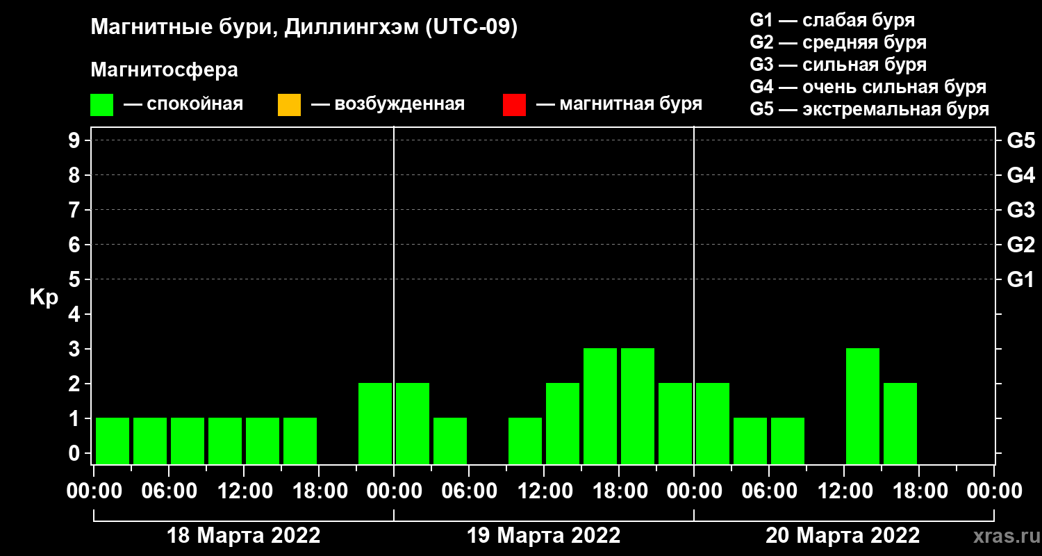 Магнитные бури в Диллингхэме 20 марта 2022 года