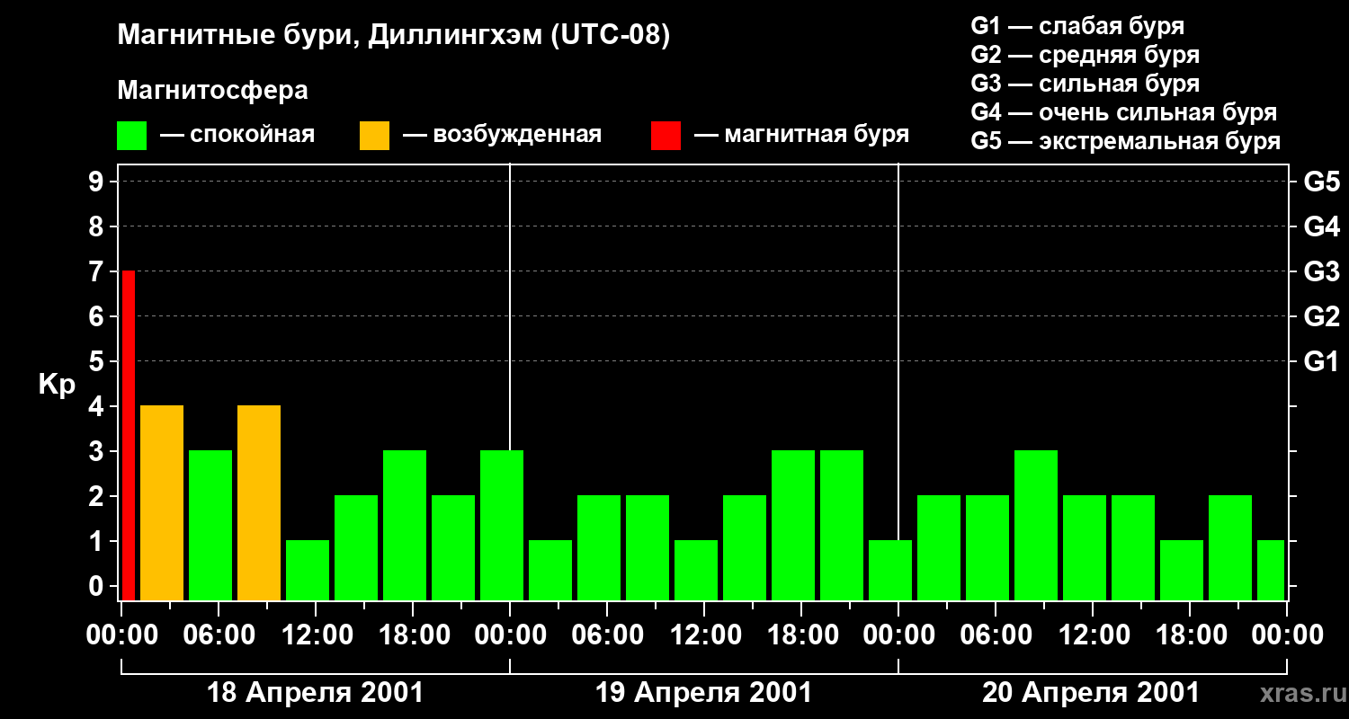 Магнитные бури в Диллингхэме — 20 апреля 2001 года