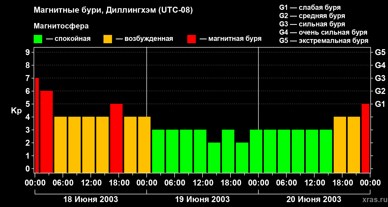 Магнитные бури в Диллингхэме 20 июня 2003 года