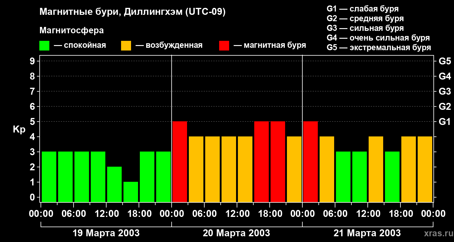 Магнитные бури в Диллингхэме — 21 марта 2003 года