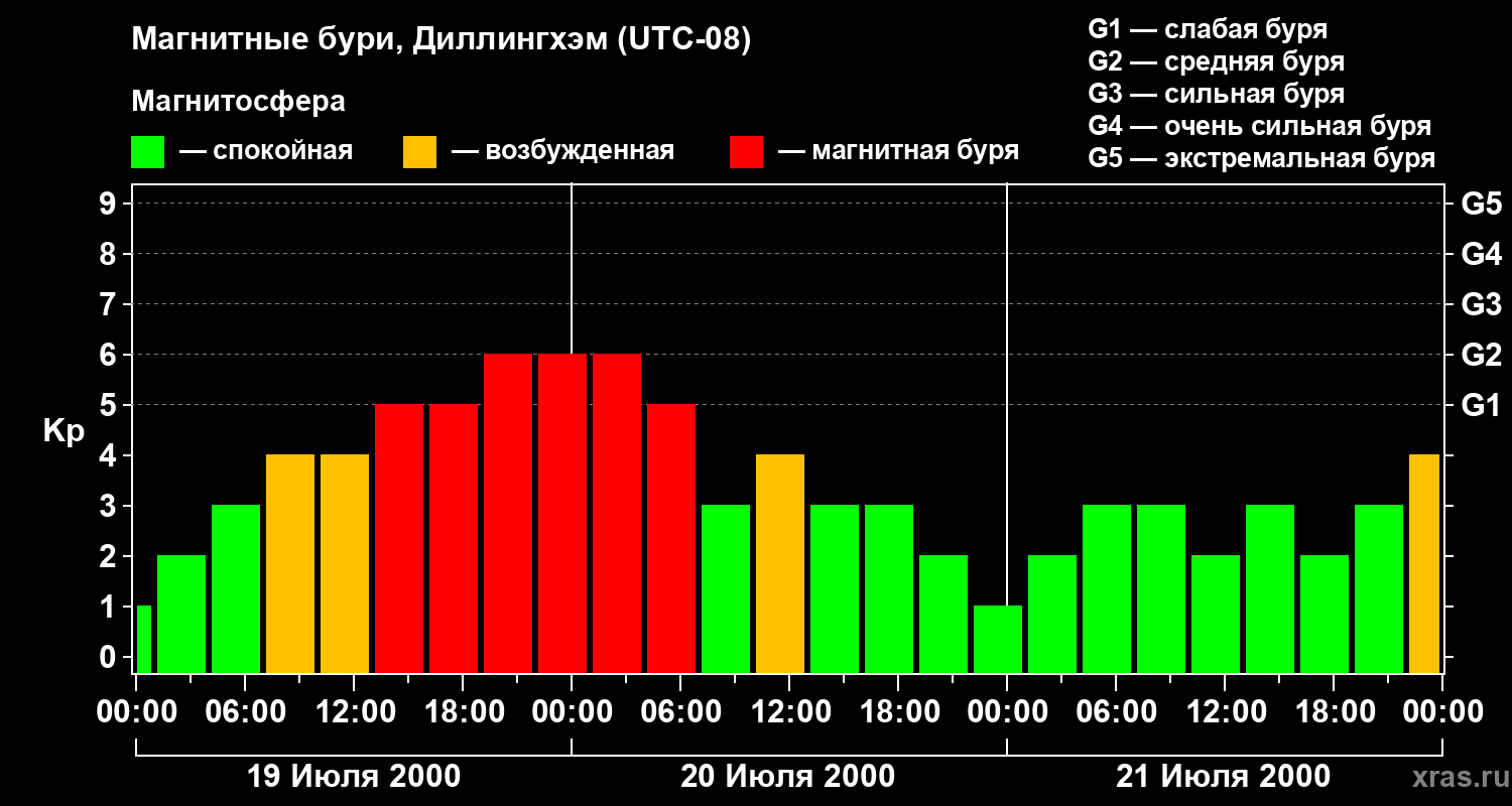 Магнитные бури в Диллингхэме 21 июля 2000 года
