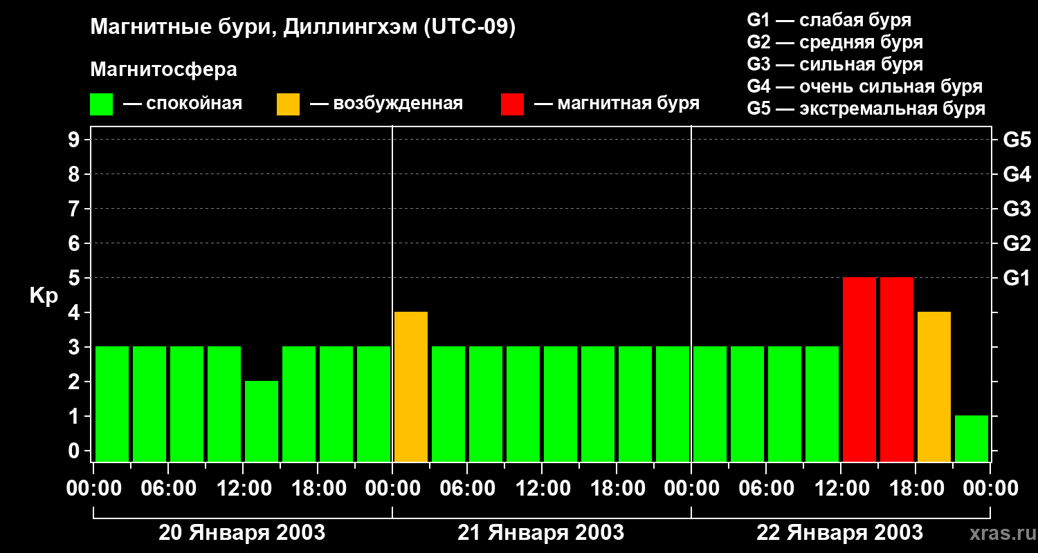 Магнитные бури в Диллингхэме — 22 января 2003 года