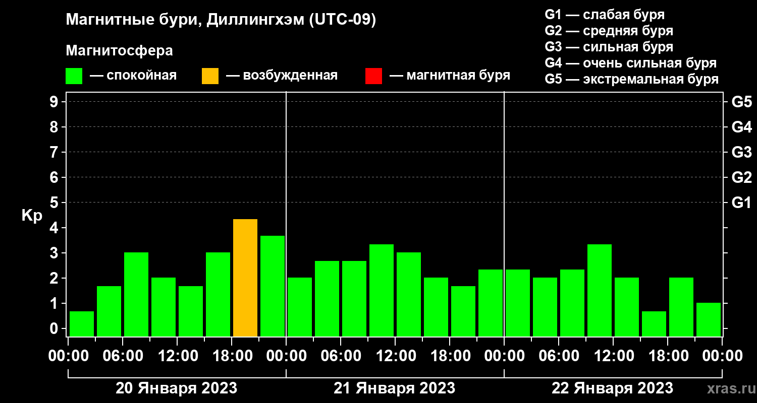 Магнитные бури в Диллингхэме 22 января 2023 года