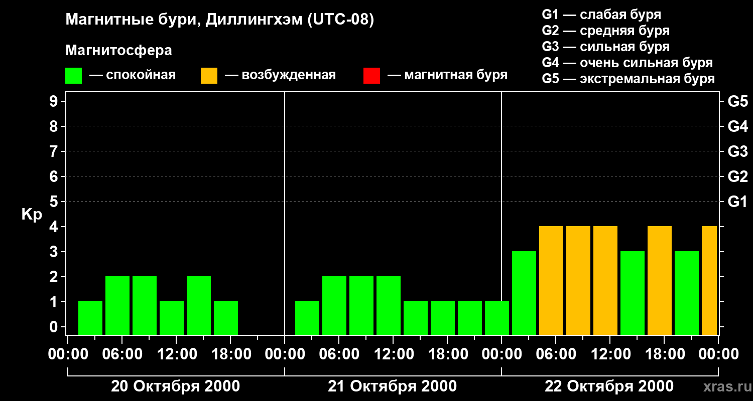 Магнитные бури в Диллингхэме 22 октября 2000 года