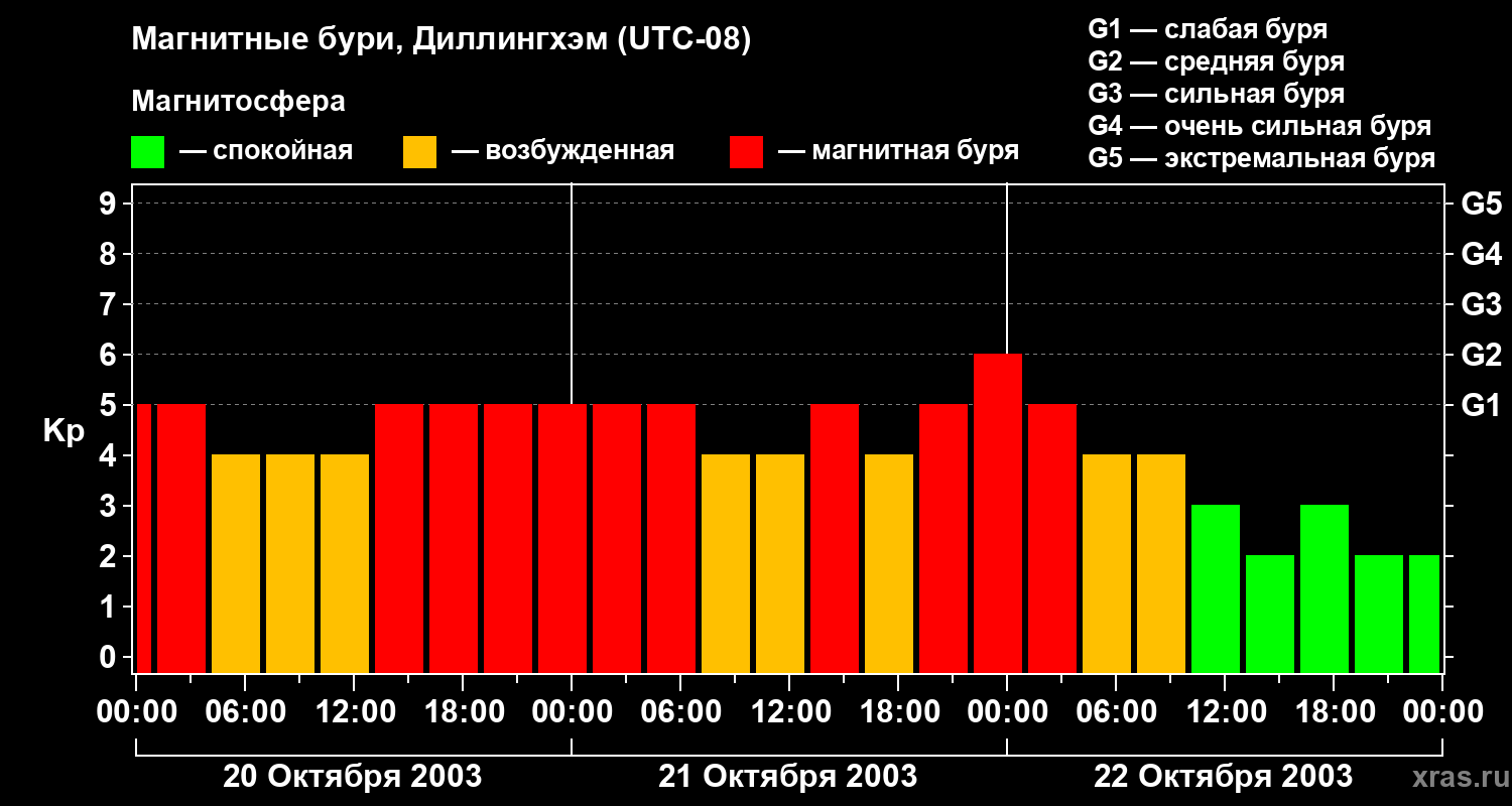 Магнитные бури в Диллингхэме — 22 октября 2003 года
