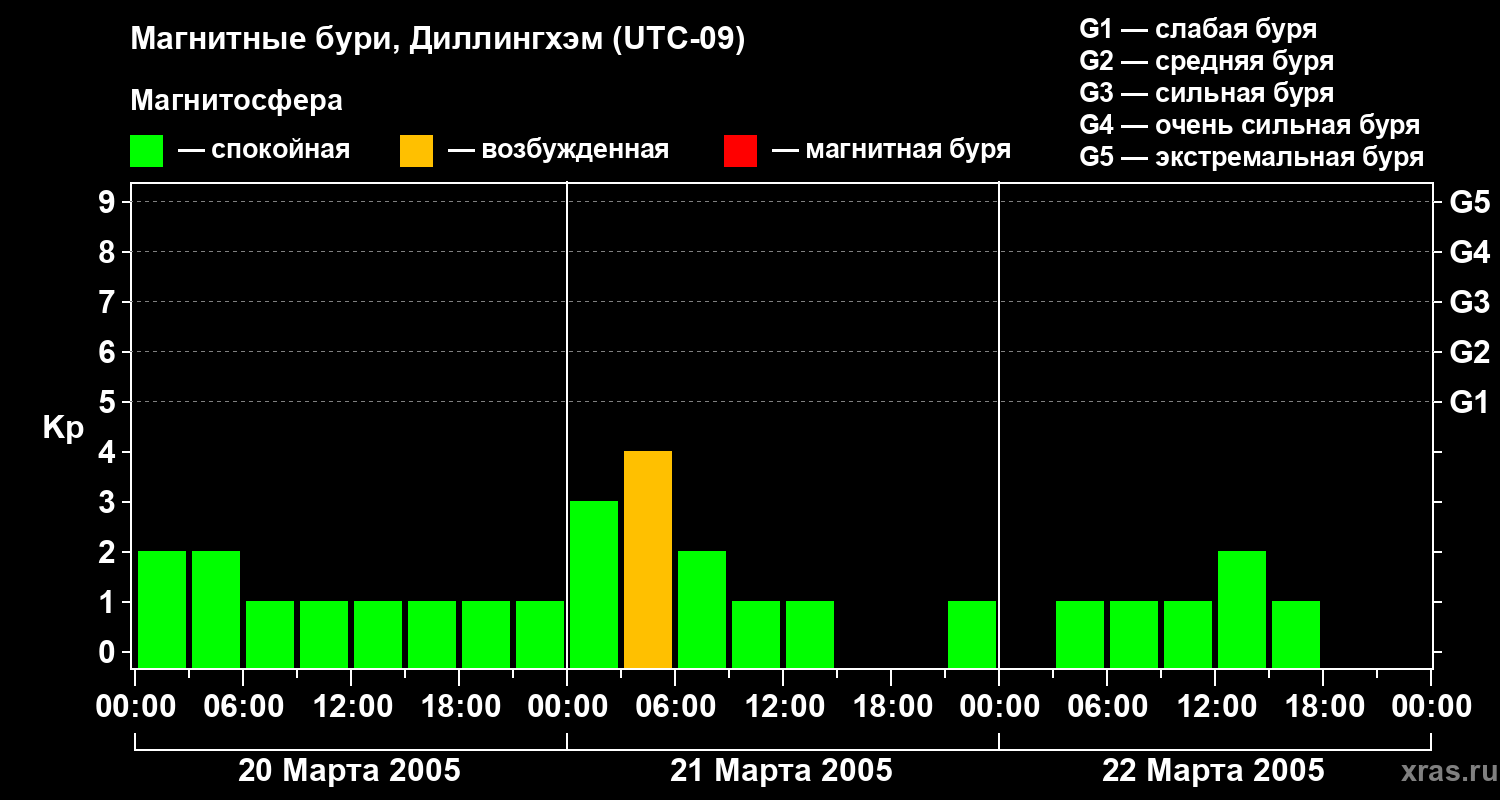 Магнитные бури в Диллингхэме 22 марта 2005 года
