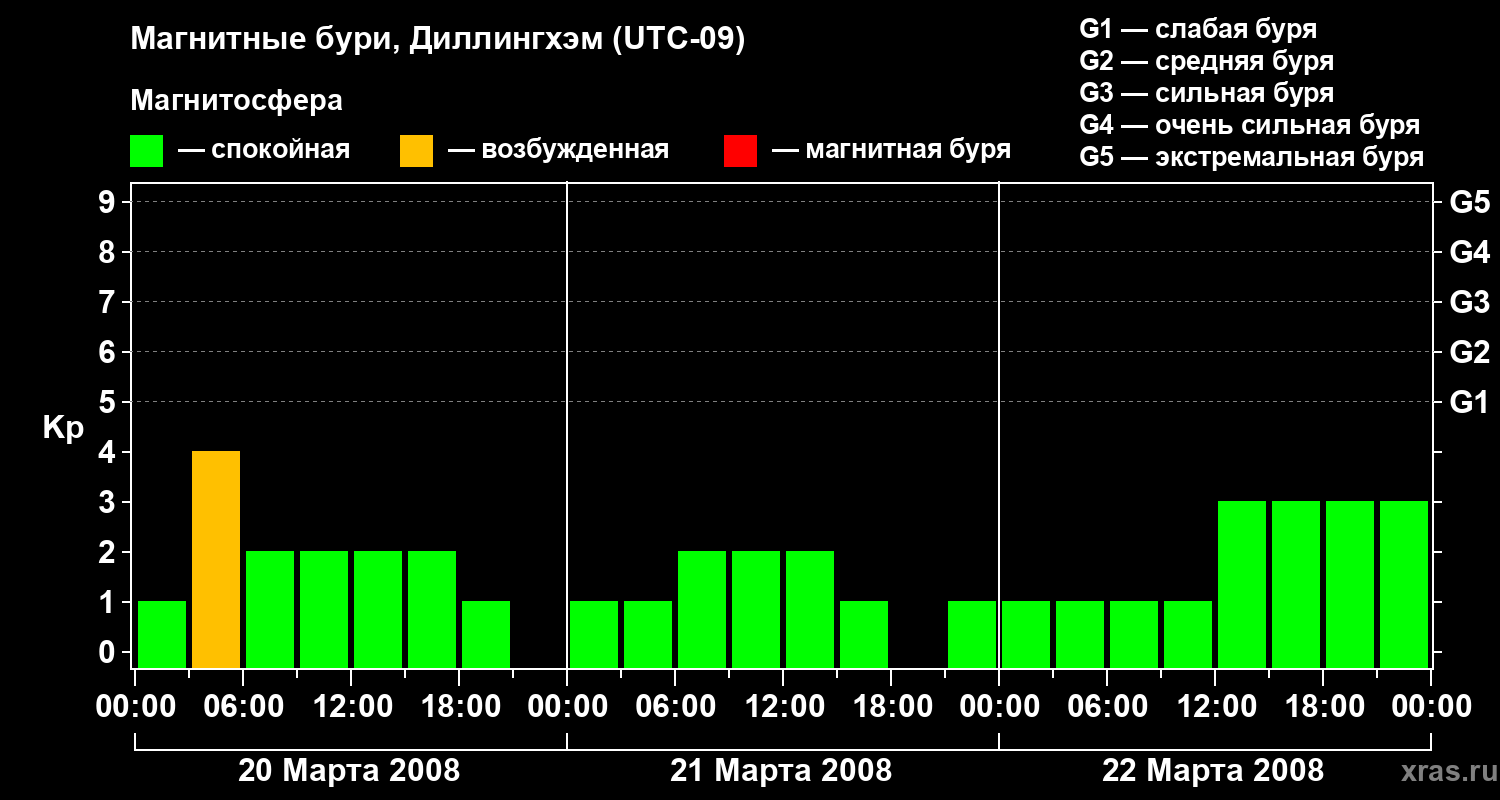 Магнитные бури в Диллингхэме 22 марта 2008 года
